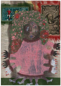 Slična situacija je i sa Vladimirom Pavlovićem. Pavlović se u celosti „Art booka“ – ako ne i sopstvenog stvaralaštva en generalle – bavi grubljim kolažem. Svako delo mu je neispeglano, (ba)reljefno, potreseno. Em umetnička, em ljudska aberacija. Štaviše, jedino od Pavlovića što je u sklopu „Art booka“ približno stripu je rad na str. 12, gde podjednako, kao Radev, iziskuje od čitaoca da sam dođe do sopstvenih zaključaka. Interesantni radovi su mu na stranama 14 i 15, prvenstveno zato što su tematski jako srodni. Oba su ljudske kreature sa telesnim distorzijama kakve samo studije Ivice Stevanovića mogu da prevaziđu. I obe kreature imaju vidljivu pupčanu vrpcu. I obe su okružene skeletima ptica, bilo u letu, bilo u mirovanju. Ova braća po umetničkom prikazu čak i sopstvene pupčane vrpce okreću jedan ka drugom, kao u želji da zajedno vežu sopstvena limitirana značenja i kreiraju neko novo, poznatije široj publici. Možda mu je najpitomije delo na str. 22, jedino čovečje stvorenje predstavljeno s nevinim, gotovo prijatnim osmehom. I naravno, stvorenje je žena. I naravno, boja koja preovladava je plava. I naravno, njenim telom preovladava vir. Sve kao podešeno da privuče čitaoca da se smiri, da joj se poda, da ostane na toj strani zauvek.