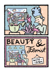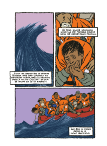 Pogledajmo to na direktnim primerima. „Dérive“, „Island“ i „Migrations“ spadaju u neku „Classic Korin(a)“ potkategoriju – iole realističan stil, jasno definisane figure, pripovedanje putem naracije, fluidni pokreti, itd. Pa sa druge strane imamo „Imaš li ikada osjećaj?“, „Rođendan“ i „To dolazi u valovima“, očito apstraktne eksperimente koje bih svrstao, recimo, u potkategoriju „Chaotic Hunjak“ – u poređenju sa prethodnom potkategorijom, nisu ni približno slični i imaju više vajb nečeg alternativnog. Dakako, tu je i „Cerulean“ tačno na sredini, kao meni možda jedno od najdražih ostvarenja u ovom kompendijumu. „Cerulean“, svojim izgledom i konstrukcijom, podseća dosta na stripove kakve manga autor Šintaro Kago radi (ne one krvave, već one baš eksperimentalne…i pomalo krvave).