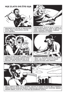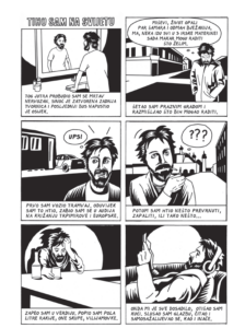 Slično se može reći i u segmentu „Boli me brdo“, odeljku ponajviše posvećenom ratu. Sem par zanimljivih detalja (poput majstora iz Tonge), ovde mi se čini kao da sam sve video – kritika rata, potresne priče o ljudima uhvaćenim u unakrsnoj vatri, ekonomski kolaps… Opet, sve su to važne teme, i sve je to Matijević jako lepo predstavio. Al eto – nekako u drugom albumu očekujem štogođ novije.