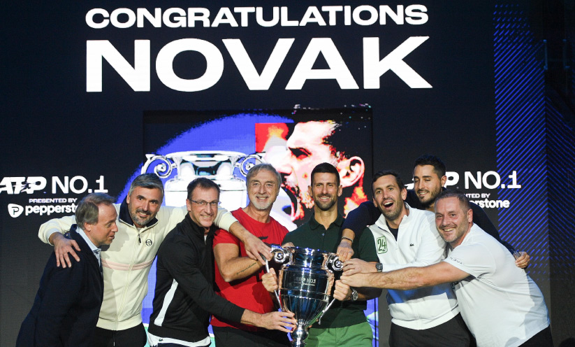 Đokoviću je pehar uručio predsednik Udruženja teniskih profesionalaca (ATP) Andrea Gaudenci uoči meča prvog kola „Crvene grupe“ na Završnom mastersu u Torinu između Španca Karlosa Alkarasa i Nemca Aleksandera Zvereva.