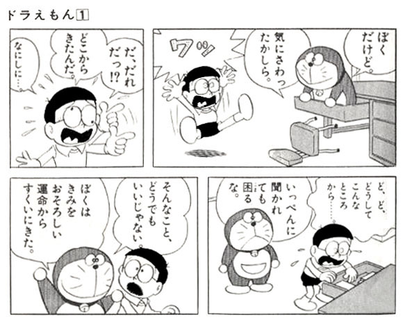 Da podsetimo, kod nas se uglavnom ‘Darkwood’ (a možda i jedini u pravom smislu) potrudio da čitaocima malo više približi svet mangi (dok su anime, kao medijski i vizuelno agresivniji, i nešto jeftiniji vid razonode, već okušale prođu na nekoliko televizija ). Među izdanjima malopre pomenute kuće svakako se ističe već predstavljeni Naruto, zatim ‘One Piece’ (autor Ejičiro (Eiichiro) Oda), koji donosi avanture sa specifičnim gusarskim naglaskom, a tu je i ‘Napad Titan’ – u originalu zapravo Atack on Titan, od mlađanog Hadžimea Isajame. Iz nekoliko kadrova nas pozdravlja mačkasti stvor, zapravo robot, Doraemon (ドラえもん) čije avanture potpisuje Fudžiko Fudžio (Fujiko Fujio). Vaj veoma cenjeni serijal (prvo objavljivanje u decembru 1969.) kasnije je, naravno, pretočeno i u anime i dalje komercijalizovano. Ovaj mačak će proći kroz „čari“ putovanja kroz vreme, tako da se sreće sa detinjim dobom i unuka i dede iz porodice Nobi...