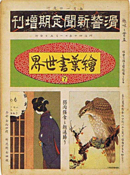 modernizacija zemlje u II pol. XIX veka…) dolazi do poprimanja stranih uticaja – ugl. američkih i britanskih, uz neke direktne edukativne usluge stranih umetnika, što doprinosi nekoj novoj likovnoj estetici u Japanu. Čak se za mangu jedno vreme koristio naziv ponči-e (Punch-picture), po ugledu na britanski magazin Panč (Punch), koji je takođe poslužio kao uzor sa svojim humorističkim i politički satiričnm ilustracijama, malog formata od jedne ili četiri slike. Panč je zapravo i direktno pustio izdanke sa nekim svojim izdanjima u Japanu, a potom se (1874.) pojavio i domaći ćasopis posvećen mangama, Eshinbun Nipponchi (slika 4).