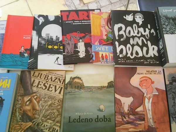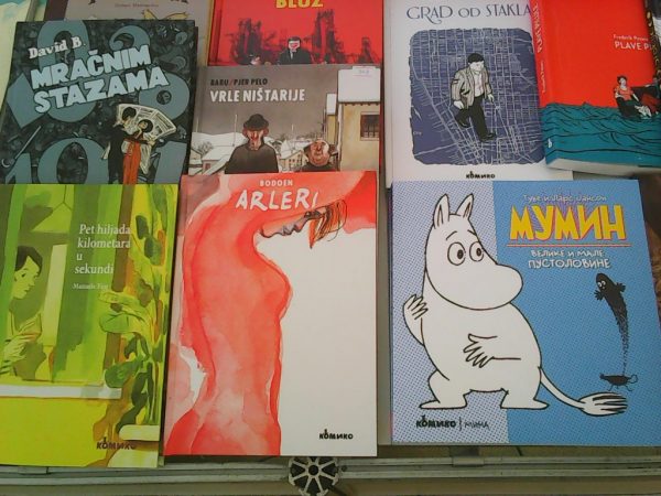 Elem, Đački trg, ispred prestižne prosvetne ustanove kao što je Prva kragujevačka gimnazija – raspust je uveliko u toku, ali ponuda razbađkarena ispod dva pristojna šatora tik ispred ovog uglednog zdanja donekle asocira na neko bekstvo od obavezujućih nauka i pisanija u svet mašte i ležernosti stripova… Ah, kamo sreće da i današnji klinci bar nekom trećinom beže u jedan svet izmaštan kroz medij poput stripa!