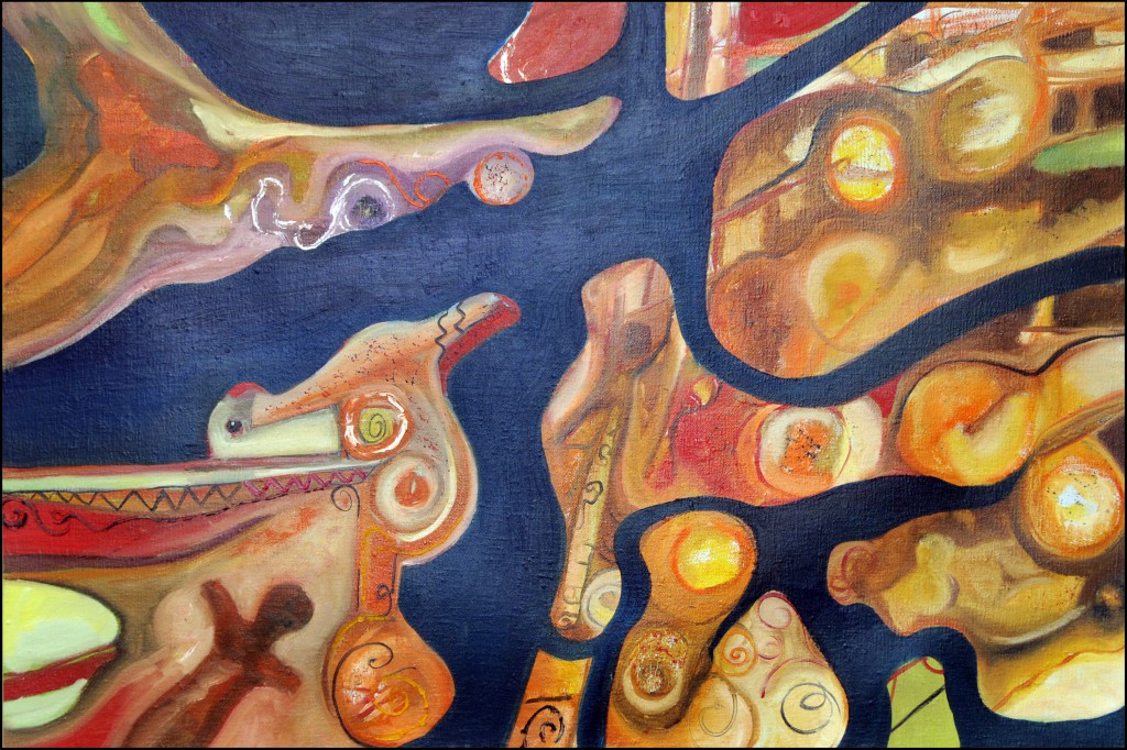 На слику “стављам“ оно што се тог тренутка „врти“ по мојoj глави, а онда, између цртежа, бојама и линијама покушавам да направим везивно ткиво и драматургију слике.
