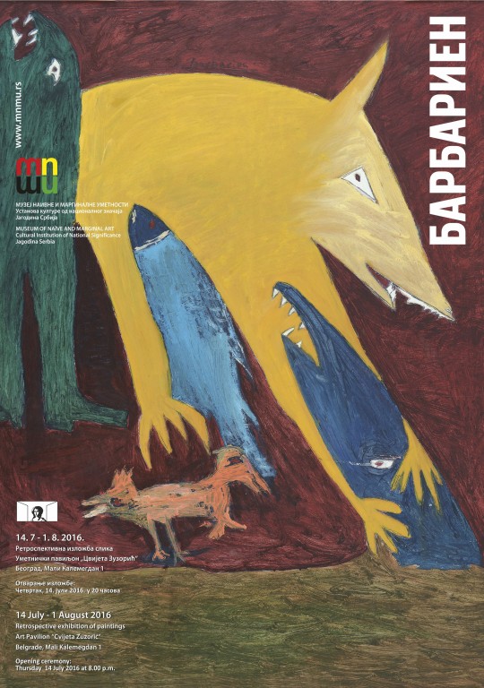Уметнички Павиљон „Цвијета Зузорић“ на Малом Калемегдану захваљујући Музеју Маргиналне уметности из Јагодине нам поклања ретроспективну изложбу слика покојног Предрага Милићевића Барбаријена из Светозарева, једног од најзначајнијих арт брутиста на ширем европском плану. Овом изложбом испунила се жеља уметника коју је оставио називом слике „ЛУВР 2999 или кад будем мртав и бео”. Пеђу Барбаријебна поред његових Mораваца познају многи Kрагујевчани, љубитељи уметничке фотографије, поезије, спортисти и спортска публика, љубитељи брзог испијања пива, а наравно и сликaри. Остао је упамћен са бројних жирирања и изложби уметничке фотографије крајем седамдесетих и осамдесетих година у Крагујевцу. Каратистима „Карате клуба Раднички” остао је у сећању корпулентни, жустри, црвенокоси и црвенобради момак ниског раста, склон атрактивним нападима, који није имао треме ни пред ауторитетима у том спорту. Као гласног навијача и жустрог коментатора памтимо га са трибина хале „Језеро“ када је пратио боксeрску каријеру свог сина Стефана. Хвалио се се својом запаженом изложбом BLOW UP коју је имао јуна 1996. године у крагуjевачком Малом ликовном салону. Гостовао је на ликовноj конији у Основној школи „Станислав Сремчевић“ поводом прославе 21. октобра, 2007. године где је оставио два дивна дела. „Сада сликам само караконџуле”, промеконтарисао је заинтересованим колегама и ћачићима школе који су опколили његов штафелај. Хвалио је своје колеге из Шумадије, јер је у Крагујевчанима имао другове, пријатеље и обожаваоце из спорта, уметности. Партнере са којима је расправљао о могућности фотографије и фотографске технике, уметности, сарађивао, трампио се и одмеравао могућности и љубав у брзом испијању пива. По занимању за Барбаријена ( 1963-2013) морамо признати да је у атељеу имао своју катедру за слободне уметнике и боеме.