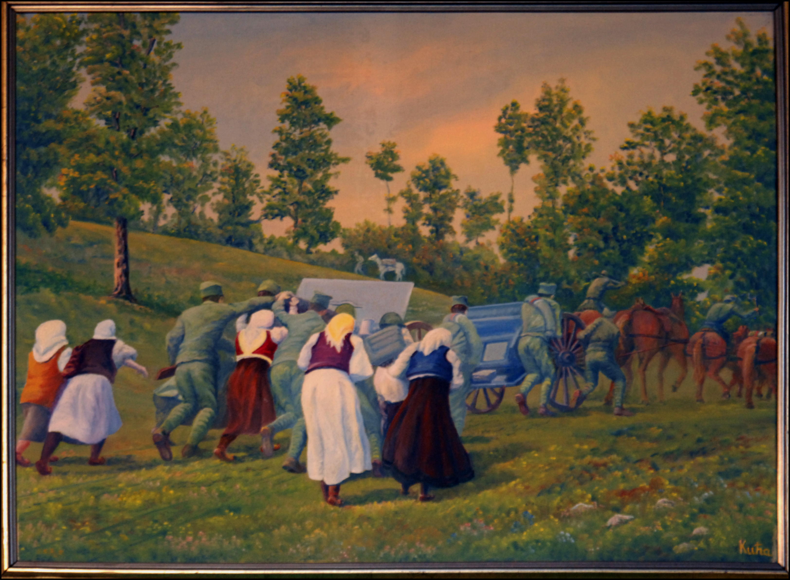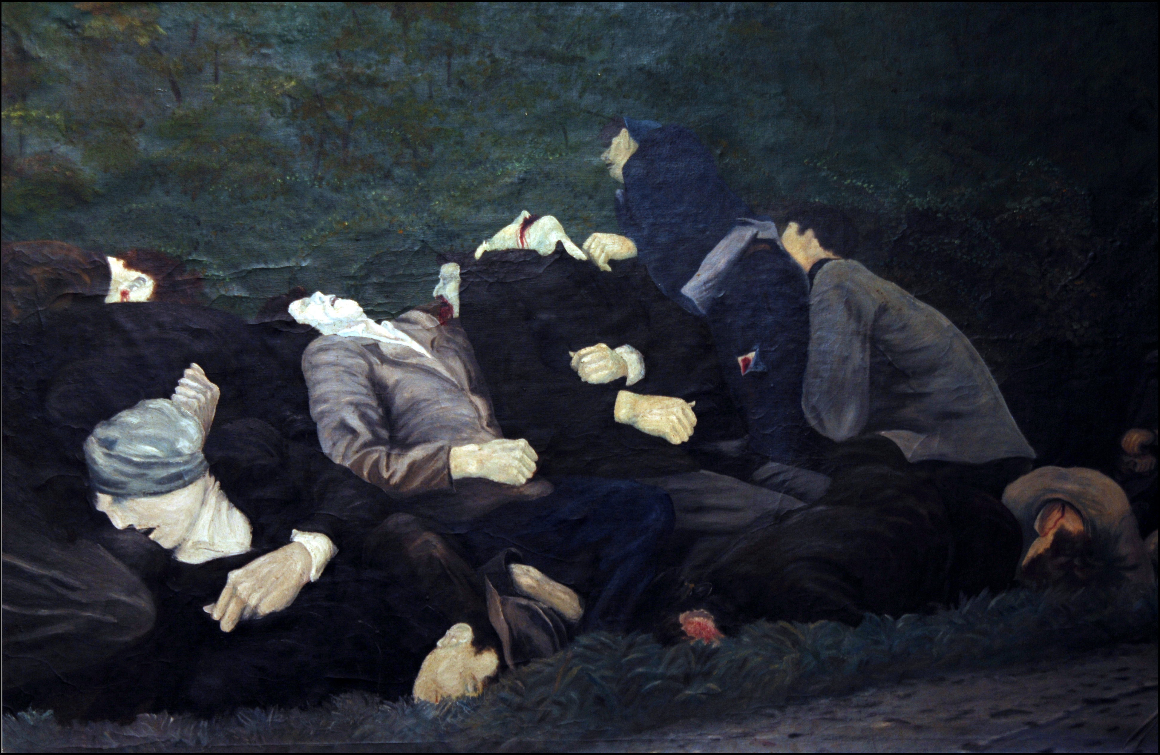 – „На платнима постао песник. Сликом апокалиптичног ужаса, „Октобарске жртве” носи у себи нешто посебно и за самог уметника и утврђује један свеопшти трагични момент. Стравична слика једног готово пријатног места. Напаћена земља алегориски изводи ка изворима светлости” пише Вељко Купрешанин 1970. године.