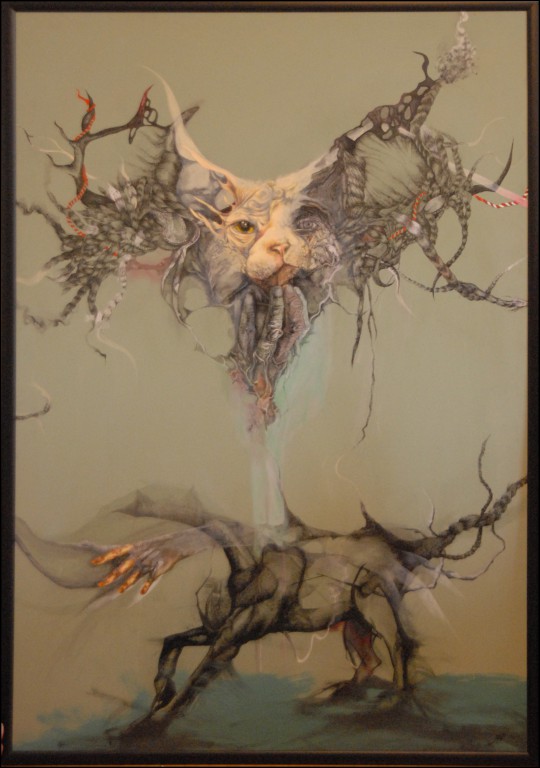 Изложила је једанест цртежа рађених у комбинованој техници, туш и перо, колаж, акрил!