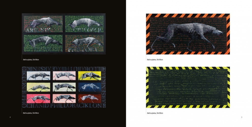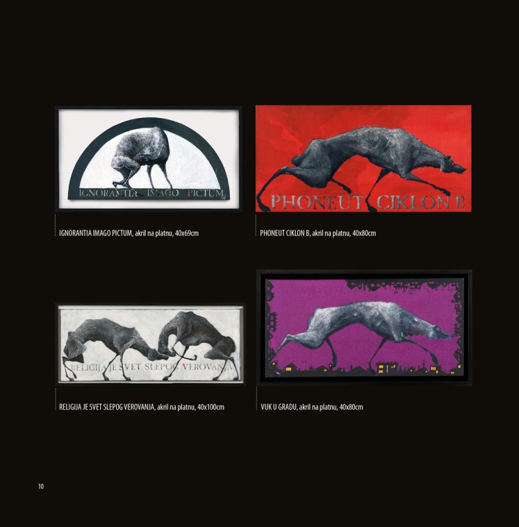 То су поруке и себи, сврставајући их у неки вид декорације или приближим полупримењеним или ликовној уметности. Мада ја имам ко зна откада посебно примену, чини ми се да не постоји ликовно све је примењено! Човек се осећа лепо поред нечег што му не угурожава живот. Суштина је мали излет везан за животиње, једна врста провокације, мада није само „то” моја преокупација. У мом послу има сто чуда. Графички дизајн јесте, али није утицао на исписивање текстова, већ је и део наставка „Брода будала”, излета у филмску продукцију, неки 3Д. Када данас нешто урадим ја се чудим, ствар доколице!