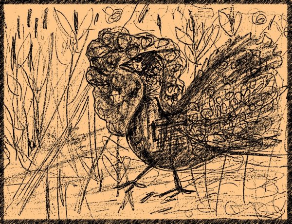 Сунце му је пролазило кроз меснату коцкасту главу правећи чудне шаре на зиду.