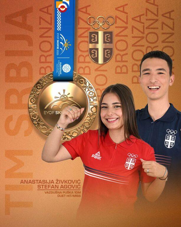 🇷🇸 Mladi strelci #TeamSerbia Anastasija Živković i Stefan Agović osvojili su BRONZANO ODLIČJE na Evropskom olimpijskom festivalu mladih u Skoplju u disciplini vazdušna puška 10m duet hit/miss!