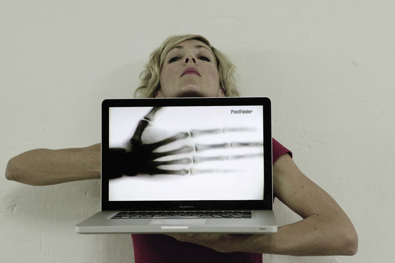 The performance establishes a space-time suspended between two parallel systems of perception: that of physical reality and that of the screen. Moving on stage with a laptop, Barbara Matijević models her body as an extension without continuity with the two-dimensional world of video images.