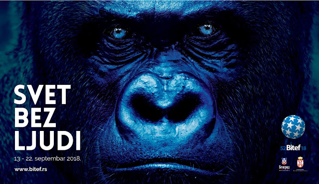 52. Bitef održava se pod sloganom Svet bez ljudi, od 13. do 22. septembra 2018, s deset projekata u glavnom programu, i to iz Slovenije, Francuske, Srbije, Nemačke, Hrvatske, Estonije, Švajcarske, Izraela i Belgije. Ovaj se naziv podjednako odnosi na obe noseće osovine glavnog programa, i umetničku i tematsko-problemsku. Kao i u prošle dve godine, program i sad ima te dve osovine, jer duboko verujemo da je misija Bitefa i da jasno mapira one umetničke fenomene savremenog teatra i izvođačkih umetnosti koji su (i dalje) radikalni, subverzivni i polemični, kao i da hrabro ukazuje na odgovarajuće, turbulentne i uznemirujuće društvene fenomene savremenog sveta. Bitef postoji da bi nas uznemiravao i umetnički i politički, pokretao da mislimo, osećamo i delamo… Na prošlom Bitefu, umetnički je fokus bio na durational performances, a problemski na velikim naracijama (cela grčka mitologija i tragedija, Biblija, srpska epika Srednjeg veka…) na kojima se zasniva naša, uveliko posrnula zapadna civilizacija.