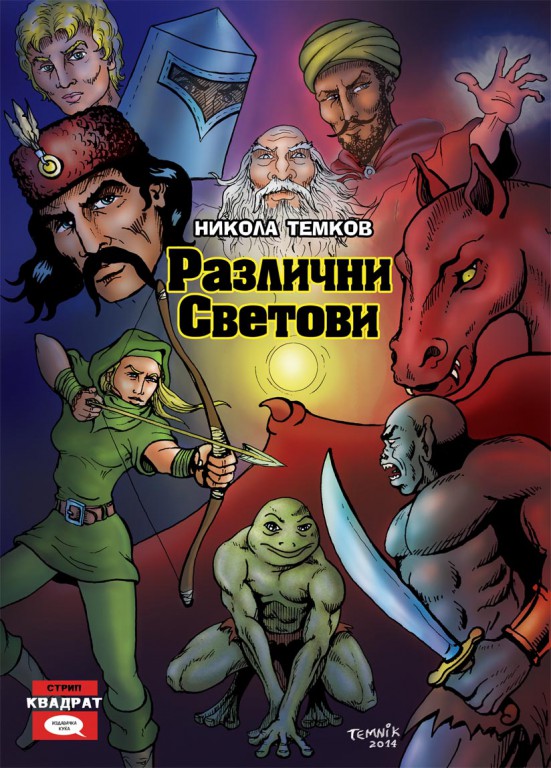 No, šta to dotični autor ima da pokaže svetu, a da je vredno izdavanja? Album „Različiti svetovi“ (tačnije „Различни Светови“) je, u nedostatku bolje reči, vremenska kapsula. Kažem „u nedostatku bolje reči“ zato što je pored toga i kapsula rasta i razvoja, kapsula tonaliteta, kapsula senzibiliteta, različitih doba u životu autora, raznovrsnih pristupa materiji, razumevanja saradnika. Kao kolekcija kratkih priča, album počinje na najkomercijalniji, a opet najličniji mogući način – jednim tie-in stripom za kartičnu igru. Temkov je došao na ideju da glavni avatar kartične igre za koju je dizajnirao, zvani Glunst, poreklom čovek-žaba, dobije kratak strip; priča bi se bavila njegovim najranijim danima, pre nego što je stasao u mišićavu gromadu vidljivu na ilustraciji same karte. Šarm ovog delića jeste u njegovoj jednostavnosti – vidi se pomalo nesigurnost Temkovljeve ruke, iskakanja u anatomskom i narativnom smislu, ali je hemija između likova naprosto dirljiva, i taman toliko zagolica maštu čitaocu da se traži nastavak.