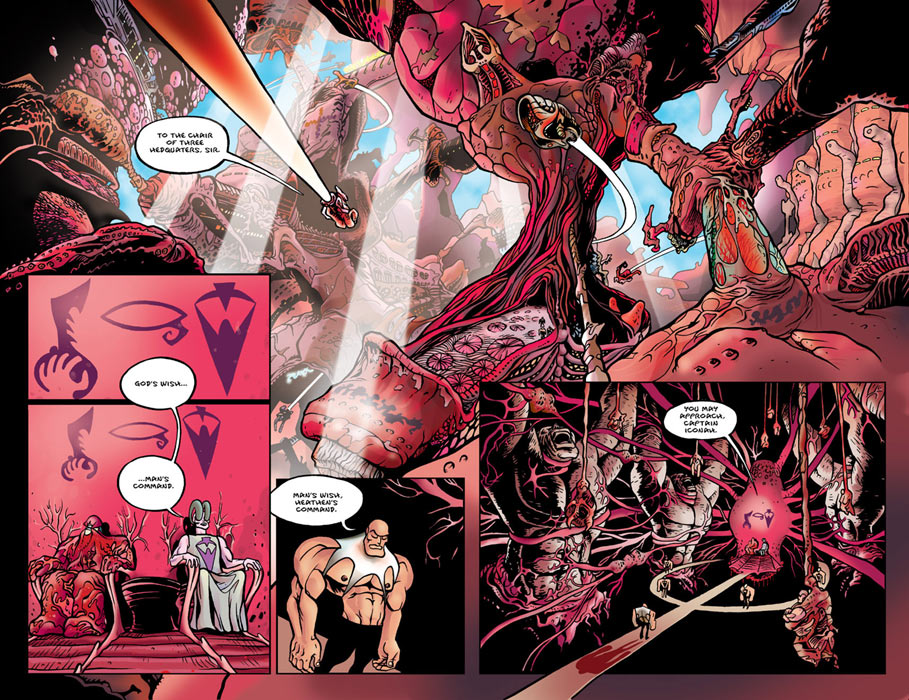 Priča „Cruciforma“ je jedan solidan početak za trilogiju. Ljudi su uspešno osvojili čitav univerzum i proširili svoju dogmu na vanzemaljce. Hrist je ponovo hodao među ljudima, oni su dobili zadatak da nađu i osvoje Univerzalno srce, i u procesu pokorili svako racionalno živo biće. Odmah po tome sleduje postavka novih Deset zapovesti, i odmah po javljanju pokreta otpora, junak naroda se šalje da ga uguši. Taj junak je ujedno i glavni lik ove priče, kapetan Ikona. Ćelavi, dobro građeni gospodin od šezdeset leta i tek malo manje vojnog iskustva – savršena uloga za Dvejna Kamenče Džonsona ili Vina Dizela. Kao i ostali, Ikona sluša naređenja Stolice Trojstva – u principu tri grane vladavine: vojska, sveštenstvo i sudstvo, svako sa svojim predstavnikom. Nema mnogo intriga niti spletkarenja u ovom stripu, sve je mahom jasno i sve ide svojim tokom. Opet, valjano za prvi deo u trilogiji.