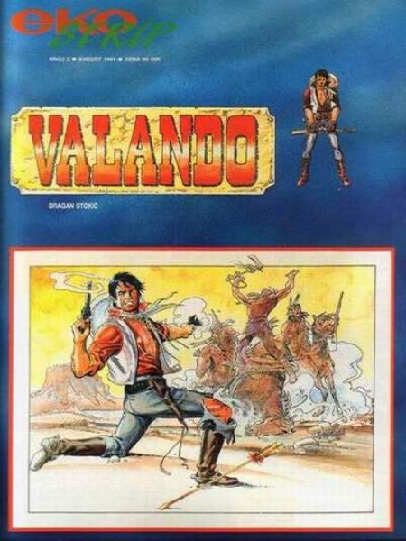 „Valando“ je nešto jednostavnija priča. Govor i o južnjačkom kauboju koji drpiše pare i satire gamad za uhlebljenje. Međutim, priča kojom je Rajački rešio da krene sagu o Valandu se bavi prvom većom začkoljicom u njegovom životu. Njegov bivši saradnik i on kidnapuju izvesnu učiteljicu nakon „overe“ kočija u kojima se kretala. S obzirom da tegle kasnije i dve bisage zlata, nije čudno to što krenu da ih jure svi do reda – bivši saradnici, indijanci, itd. A nije ni čudno da i učiteljica preuzme pušku u jednom trenutku, te nastane opšti karambol u vidu prepirki, opaski, dosetki i pesničenja (mahom među muškima). Valando ne odstupa mnogo od prosečnog kauboja-junaka stripa, izuzev karakterističnog izgleda koji mu Rajački „pripisuje“ četkicom i olovkom.
