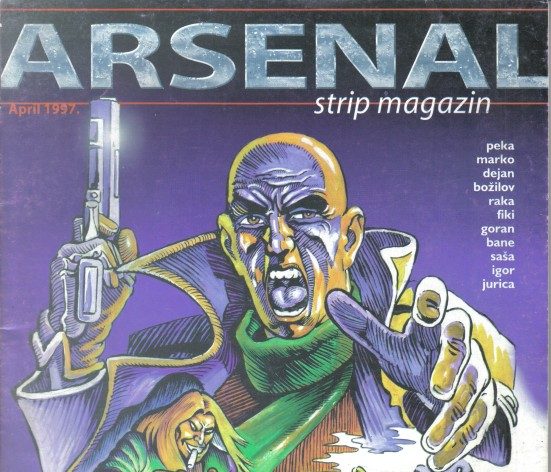Marko: Odnekud se pojavila mogućnost da nam tadašnji leskovački farmaceutski gigant „Zdravlje“ ustupi neku svoju štampaću mašinu na kojoj su radili fabrički list – u to vreme su sve veće fabrike imale svoje listove, i tu su radili ozbiljni novinari. Nikola Milićević, današnji urednik leskovačkog nedeljnika “Nova naša reč” i veliki ljubitelj stripa, a tadašnji čovek koji je bio zadužen za fabrički list “Zdravlja” je to izboksovao. Mi smo kao škola stripa na moju inicijativu 1996. godine održali izložbu “Ko to tamo crta” koja je obeležila prvu godinu postojanja i rada škole. Sem toga, objavljivali smo kaiševe u nedeljniku “Naša reč” i sarađivali na prvom broju novopokrenutog “Đačkog zabavnika” danas pokojnog Jovana Pop Kocića. Kuvalo se, dakle, već neko vreme, i nekako je prirodno došlo do toga da bi mogla da se uradi jedna publikacija – koju sam ja odmah video kao magazin. Čak sam tom magazinu smislio i ime – “Arsenal”. Bojažljivo sam ga predložio Kokanu, kao, ja sam nešto razmišljao, ne znam da li je dobro… Ali njemu se to iz cuga svidelo, rekao je da šalje sve prave poruke javnosti – da imamo širok raspon kvaliteta, ali i da je pero jače od mača, tako nekako. Svi smo se mi tada okupili oko toga, čitava škola. Kokan je u početku bio uključen u to, ali se odmah u startu ispostavilo da on to vidi kao maltene neki veliki katalog – strip od jedne table i potom biografija autora. Ja sam imao drugačiji koncept, da to bude pravi pravcati strip časopis. Ostali su me podržali, i uz Pekinu pomoć smo Kokanu to stavili do znanja – Peka je bio najstariji i najafirmisaniji od nas, što je i bio razlog da zamolim Kokana da ga pozove i uključi u rad škole stripa neposredno pre toga. Kokanu naša ideja nije prijala, i distancirao se od prvog broja nakon toga. Koliko se sećam, reakcije su bile jako, jako dobre – toliko dobre, zapravo, da su u Domu kulture porasli apetiti i da je rešio da finansira drugi broj. Smekšao je i Kokan kad je video šta smo uradili, pa je podržao nastanak drugog broja, dogovorili smo se i da uradimo njegov intervju za broj. Nažalost, intervju, a i broj u kome se našao, izašao je posle Kokanove prerane smrti…