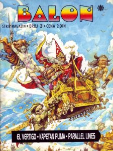 Broj 3 nosi naslovnicu koja je, pribojavam se, bez plaćanja prava preuzeta od slikara Džoša Kirbija. I nije kao da je teško prepoznati je – prednjica trećeg „Balona“ je bukvalno originalna naslovnica romana „Svetlost čudesnog“, drugog ikada po redu dela smeštenih u Disksvetu poznatog britanskog pisca Terija Pračeta. Pobogu, Rinsvind i Dvocvet se jasno vide na istoj! Tu je i poznati Dvocvetov hodajući kovčeg! A da paradoks bude veći, srpska publika ovu naslovnu neće videti u slobodnoj prodaji do 1998. godine. Dakle, „Balon“ je na neki način uveo likove iz Disksveta u srpsko čitalaštvo bezmalo tri godine pre nego što će to „Laguna“ legalno uraditi! Balkan, dame i gospodo!
