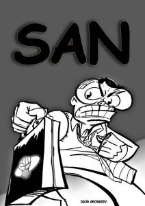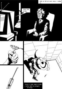 Interesantna stvar, internacionalna priroda ovog projekta. Naime, Stojanovič, poreklom slovenački autor, je strip poslao na konkurs poodavno i u međuvremenu zaboravio na isti (ne, nisam ovo izmislio; rek’o mi čovek preko mejla). Strip je objavljen bez njegovog znanja, a on se u međuvremenu prešaltao na druge kreativne domene, mahom slikarstvo i ilustraciju. Što je šteta, jer ovaj strip je izuzetno vickast, bez obzira na mračnu tematiku. Em pokriva temu ocila koja se pojavljuju na srpskim grbovima i zastavama (inače nemaju srpsko poreklo, ali to je preširoka tema za ovaj već preširok tekst), em to obavlja sa brutalnom iskrenošću kakvu samo jedan mlad autor može da doprinese. Iskreno, voleo bih da vidim povratak Stojanoviča stripu, pogotovo s obzirom na njegov trenutni nivo kvaliteta.