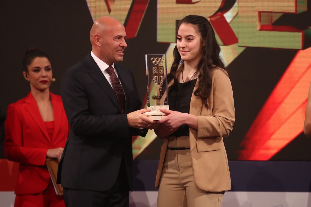 “Trofej za najuspešnijeg mladog sportistu – Bobana Momčilović Veličković”, Adriani Vilagoš uručio je predsednik Izvršnog odbora OTP banke, gospodin Predrag Mihajlović.