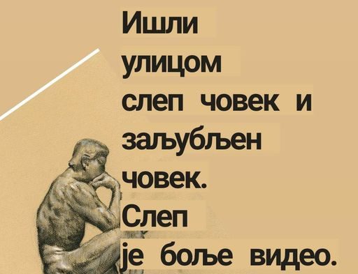* Išli ulicom slep čovek i zaljubljen čovek. Slep je bolje video.