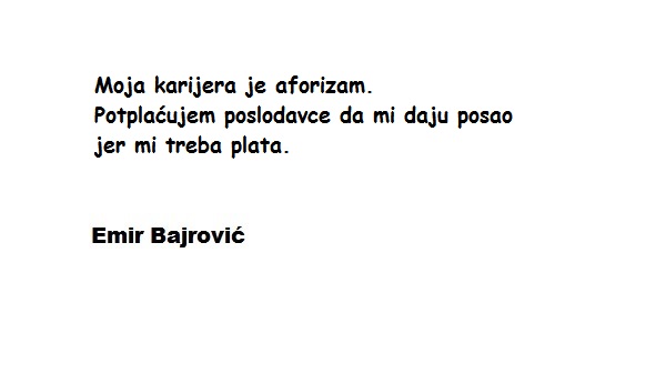 Moja karijera je aforizam. Potplaćujem poslodavce da mi daju posao jer mi treba plata.