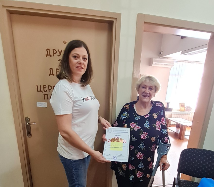 Udruženje obolelih od multiple skleroze Pčinjskog okruga iz Vranja uručilo je zahvalnicu za nesebičnu pomoć i zalaganje Centru za društvene integracije koji je realizovao nekoliko projekata u kojima su ciljna grupa bili članovi – oboleli od multiple skleroze.