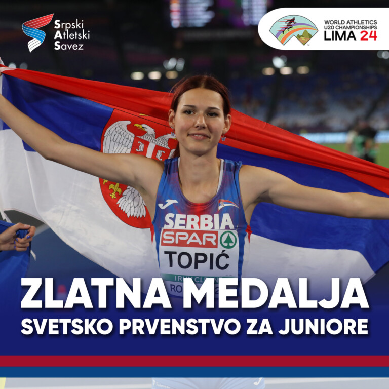 Srpska atletičarka Angelina Topić postigla je izvanredan uspeh na Svetskom juniorskom prvenstvu u atletici koje se održava u Limi, Peru. Topićeva je osvojila zlatnu medalju u skoku uvis rezultatom 1,91 metara.