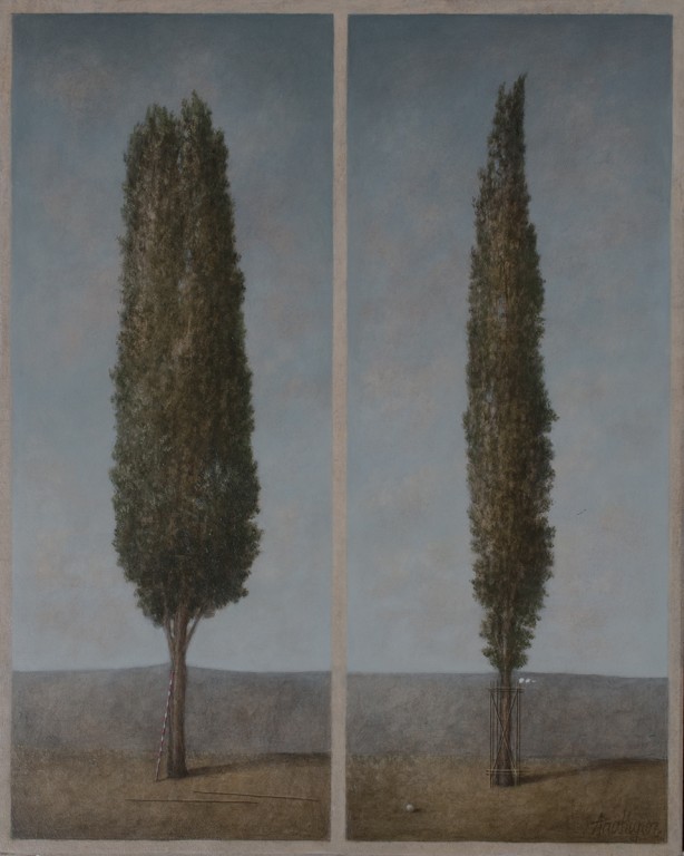 Atelje Ane Kapor: Cipressi, 32 x 25, cm_olio su tavola, 2015.