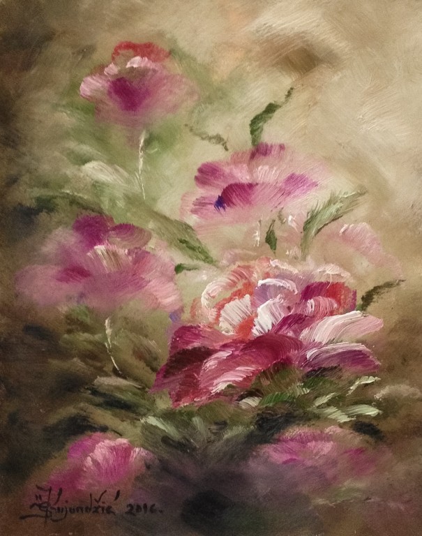 Atelje: „Božuri“- ulje na kaširanom platnu; 25x30cm