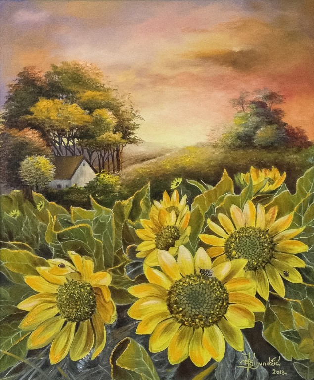 Atelje: „Buđenje suncokreta“- ulje na platnu; 60x50cm