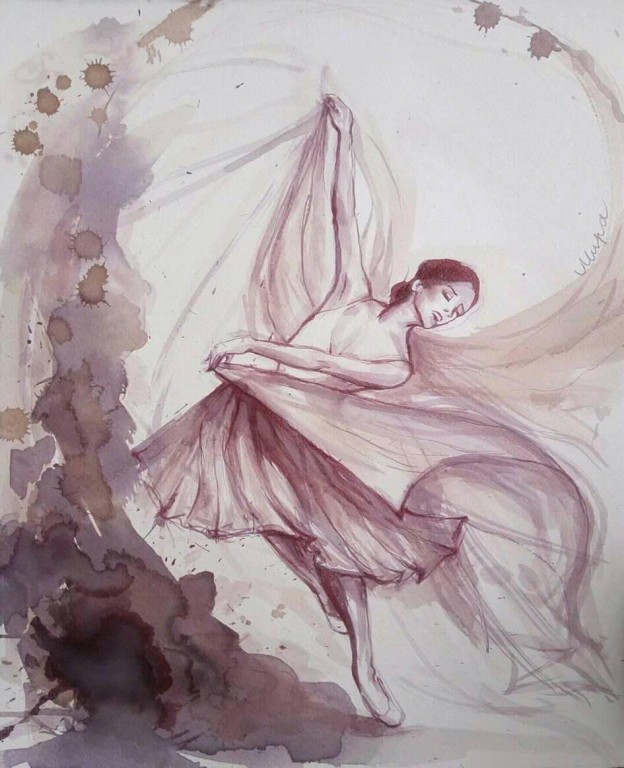 Atelje: Ples, slikano vinom – tehnika vinorel, 39×46