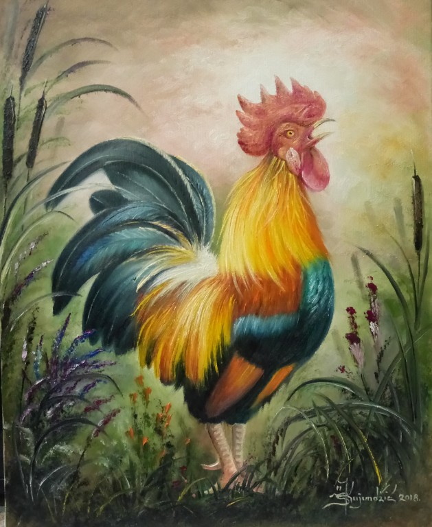 Atelje: “Pozdrav suncu (petao)”- ulje na platnu; 50x40cm