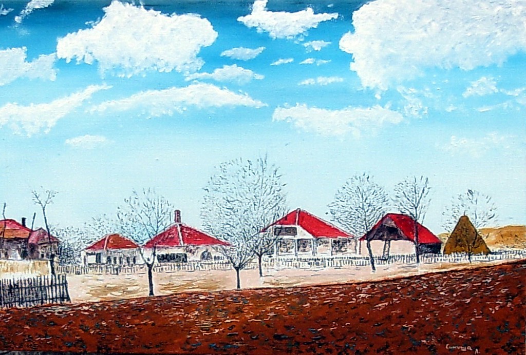 Slika: Siniša Lazarević / Živopisna idila seoskog domaćinstva (ulje na platnu, 60×40 cm)