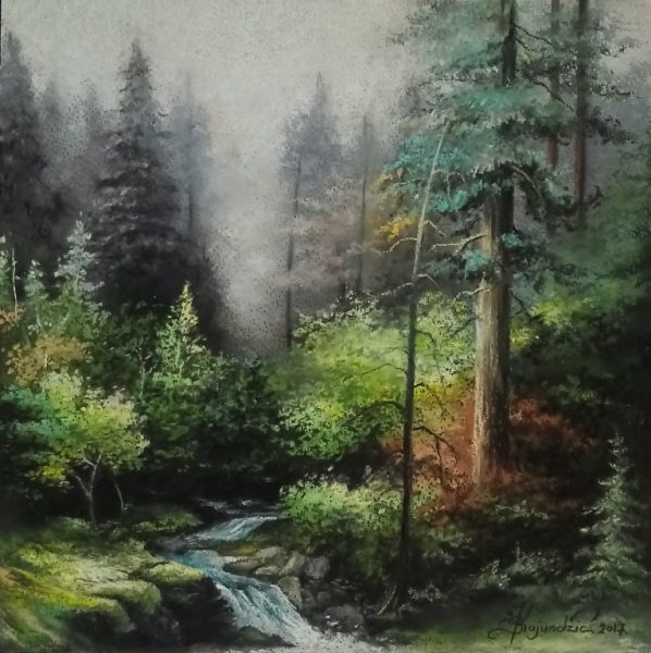 Atelje: „Šum potoka“- pastel; 23x23cm