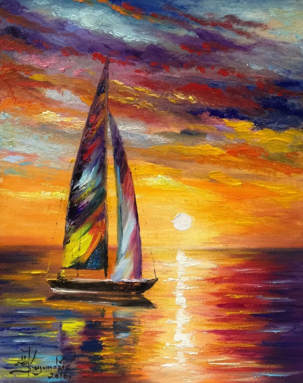 Atelje: „Zaplovio u suton“- ulje na kaširanom platnu; 20x25cm
