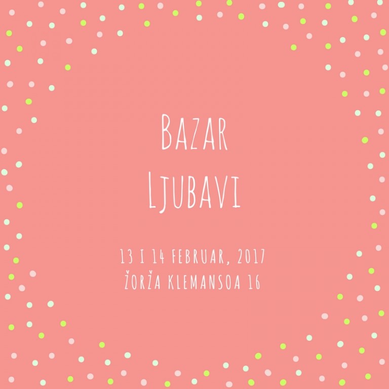 Naime, 13. i 14. februara, od 16 do 22h, u Bazi Crna ovca, održaće se Bazar ljubavi, koji posvećujemo svima vama, koji se svakodnevno zaljubljujete u – život! Niste to očekivali, a? Tako smo i mislili! Dođite i upoznajte male proizvođače čudesa, koji ljubav prema životu iskazuju svojim rukotvorinama, koje ćete moći da vidite u toku ta dva dana.
