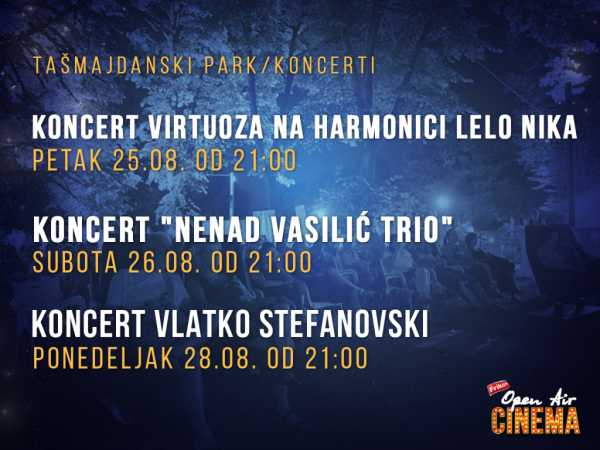 Frikom Open Air Cinema pored filmskog sadržaja i predstava koje je ponudila svojim sugrađanima tokom letnjih meseci, u svoj sadržaj je uključila tri koncerta koji će ujedno biti završnica ove manifestacije koja traje punih dva meseca.