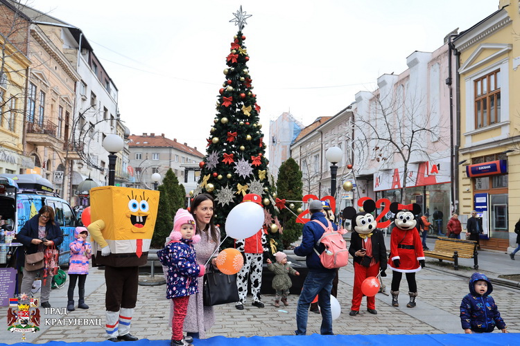 Prednovogodišnjim zagrevanjem u Pešačkoj zoni, danas i sutra 31. decembra od 11 do 15 sati programima za najmlađe Kragujevac se polako priprema za novogodišnju noć. Mališani će imati priliku da se druže sa Deda Mrazom i vilenjacima, poznatim Diznijevim junacima (maskotama), mađioničarem i klovnovima, kao i da se fotografišu ispred novogodišnje jelke ili provozaju kočijama sa Deda Mrazom. Program se završava nastupom Srpskog ansambla „Smilje“ koji će izvesti božićne i novogodišnje pesme.