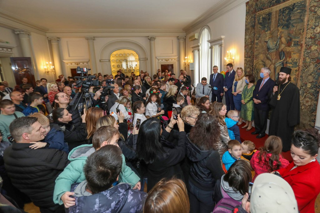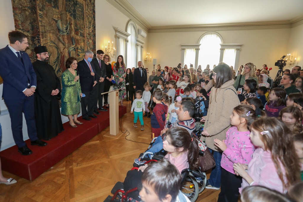 Deca bez roditeljskog staranja, deca sa teškoćama u intelektualnom razvoju i socijalno ugrožena deca, uzrasta od jedne do četrnaest godina, iz raznih ustanova i udruženja širom Srbije i Republike Srpske, imala su priliku da zajedno sa Njihovim Kraljevskim Visočanstvima osete duh praznika i podele radost Božića na tri danas održana prijema.