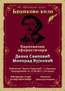 Prvi put u okviru ove prestižne manifestacije, veče satire u Sremskim Karlovcima. Učestvuju: Deana Sailović i Milorad Vujnović. Moderator Dimitrije Panfilov, voditelj programa Marija Sloboda.