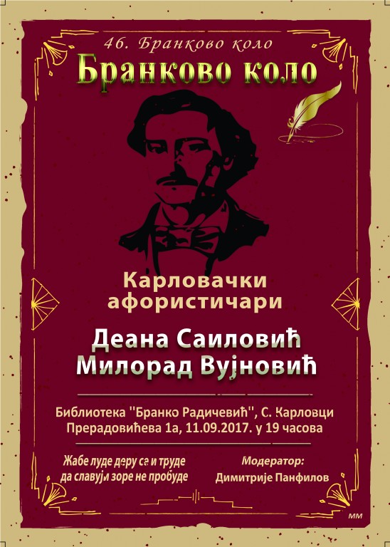 Prvi put u okviru ove prestižne manifestacije, veče satire u Sremskim Karlovcima. Učestvuju: Deana Sailović i Milorad Vujnović. Moderator Dimitrije Panfilov, voditelj programa Marija Sloboda.