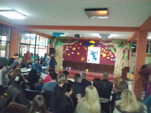 Članovi Đačkog parlamenta škole “21. oktobar“ organizovali su, u okviru akcije „Budimo humani“, Veče talenata u holu škole.