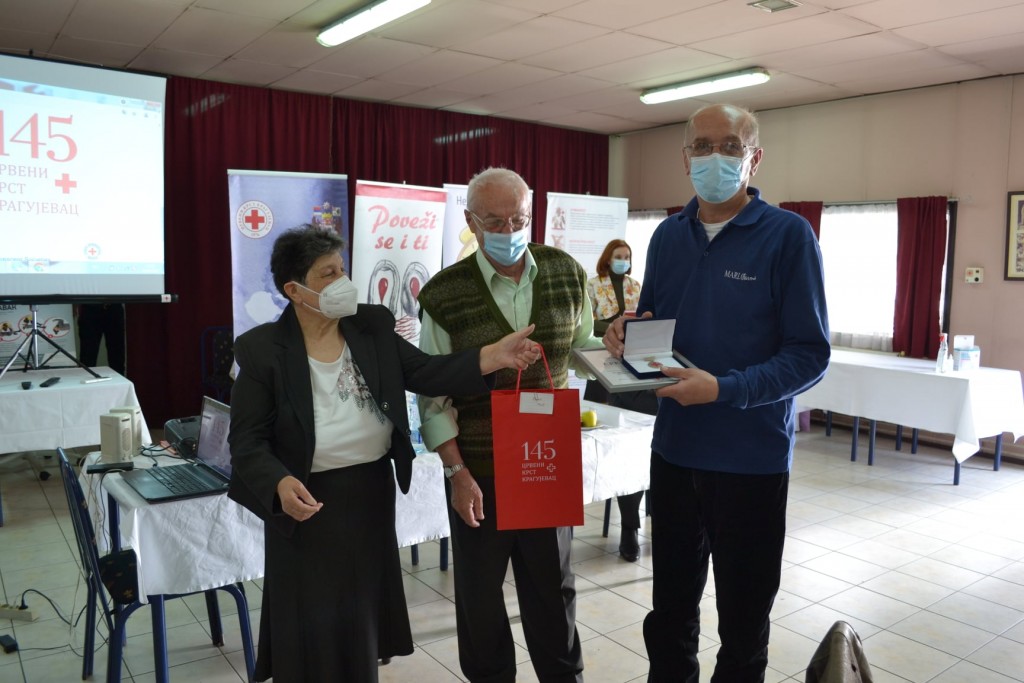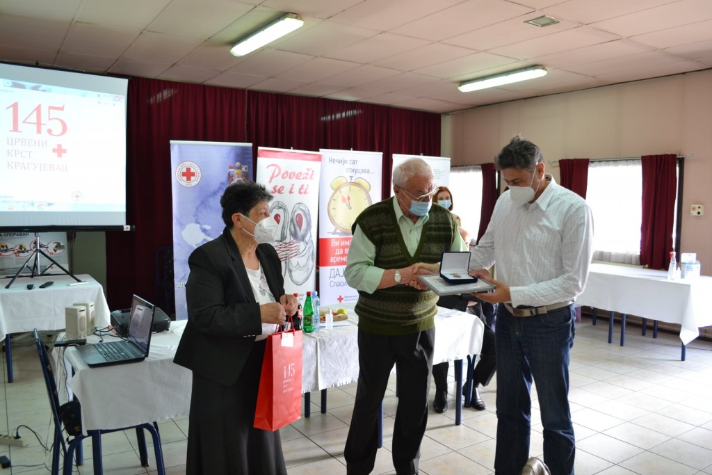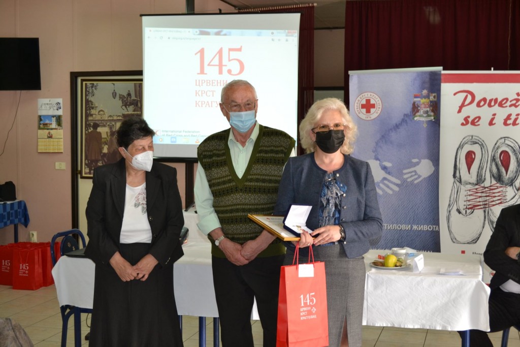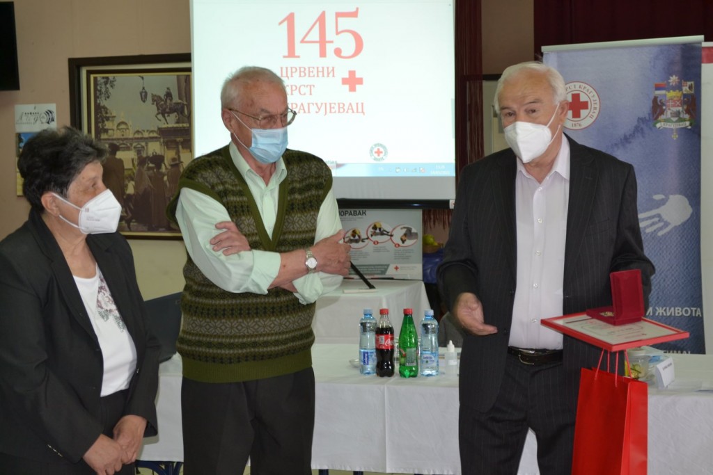 Tom prilikom je uručena Medalja Crvenog krsta Srbije, potpredsedniku Crvenog krsta Kragujevca i izuzetnom dugogodišnjem volonteru, dr Ljubiši Milojeviću.
