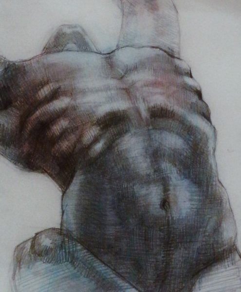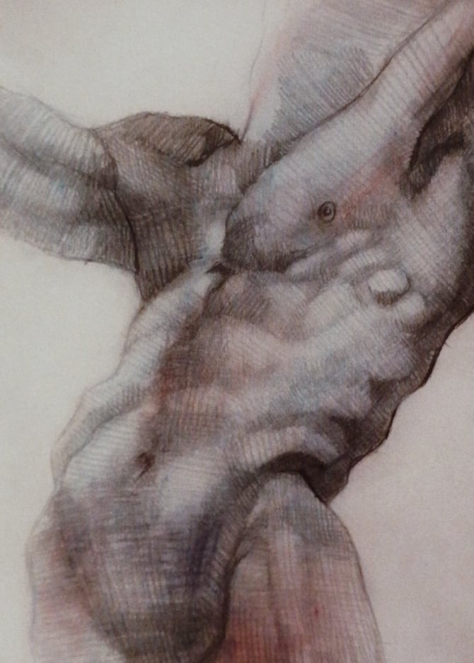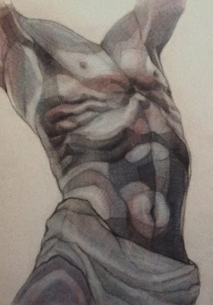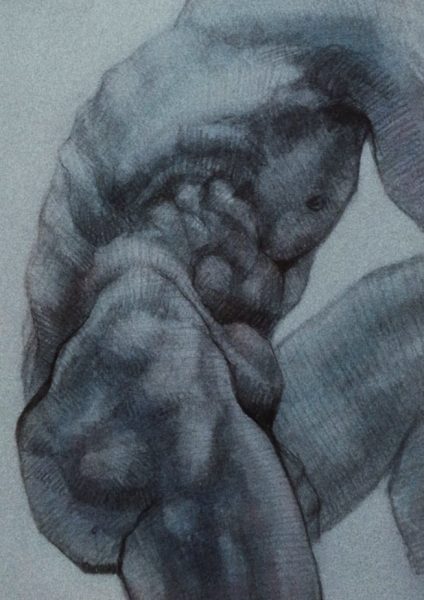 Sada sam u periodu kada najviše učim i najviše istražujem. Volim da eksperimentišem i na taj način tražim ono što meni najviše odgovara i ono što je najbliže mom senzibilitetu. Moja poetika je u fazi istraživanja još uvek. Polako će se izkristalizovati moje stvaranje vremenom. Jedina stvar u kojoj ću sigurno ostati dosledna jeste prikaz čoveka, njegovog portreta i anatomije. To je nešto što mene najviše privlači i nešto što mi je najbliže. Predstavlja mi veliki izazov, pa je tako i osećaj stvaranja izvanredan. Akt istražujem već tri godine. U početku su to bile klasične studije na velikim formatima, rađene ugljenom u kredama. Kasnije na časovima anatomije želja za crtanjem akta se još više povećavala i navodila na dalja istraživanja. Postepeno sam razvijala priču o anatomiji i torzou, počela sam od crtanja poznatih skulptura u crvenoj boji, a sada sam presla na ljudsko telo u plavoj boji. Razlog za odabir takve boje i tona nemam. Ideja za to je došla potpuno spontano, samo sam nekako razvijala priču dalje. Ovi formati su jako mali, 26x18cm, tako da ću uskoro početi na puno većim formatima da crtam torzoe i nastavim sa daljim istraživanjem. Odabir boje će, verujem, doći sam od sebe, kako me bude poneo trenutak.