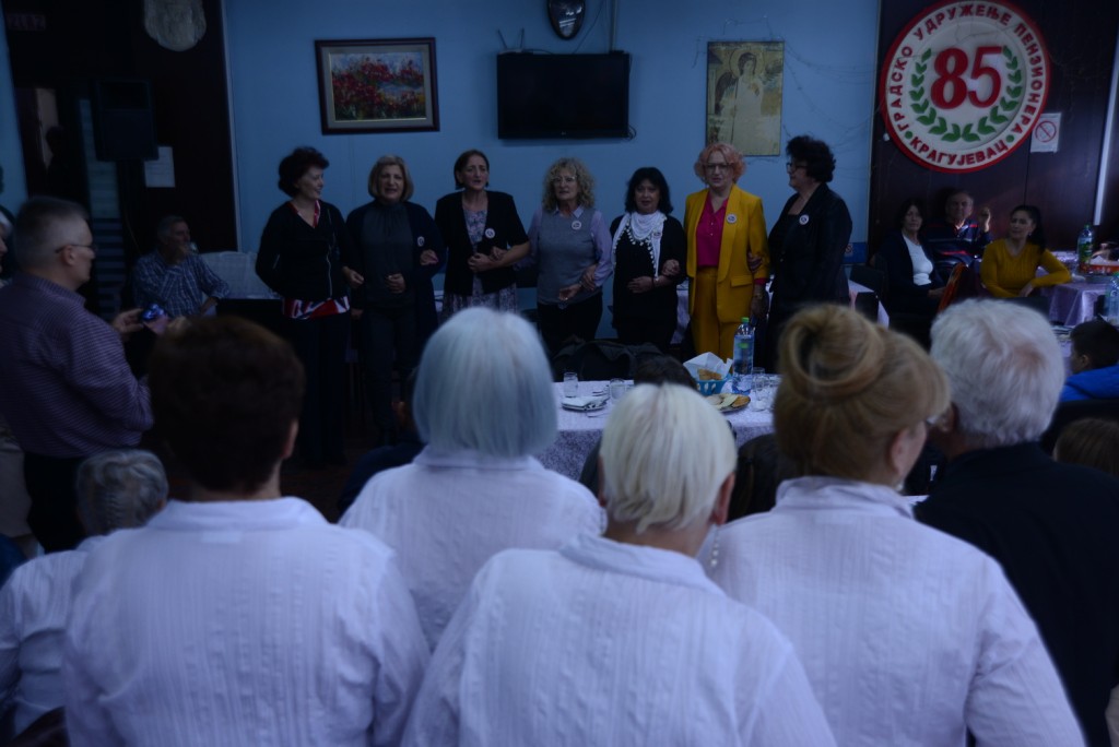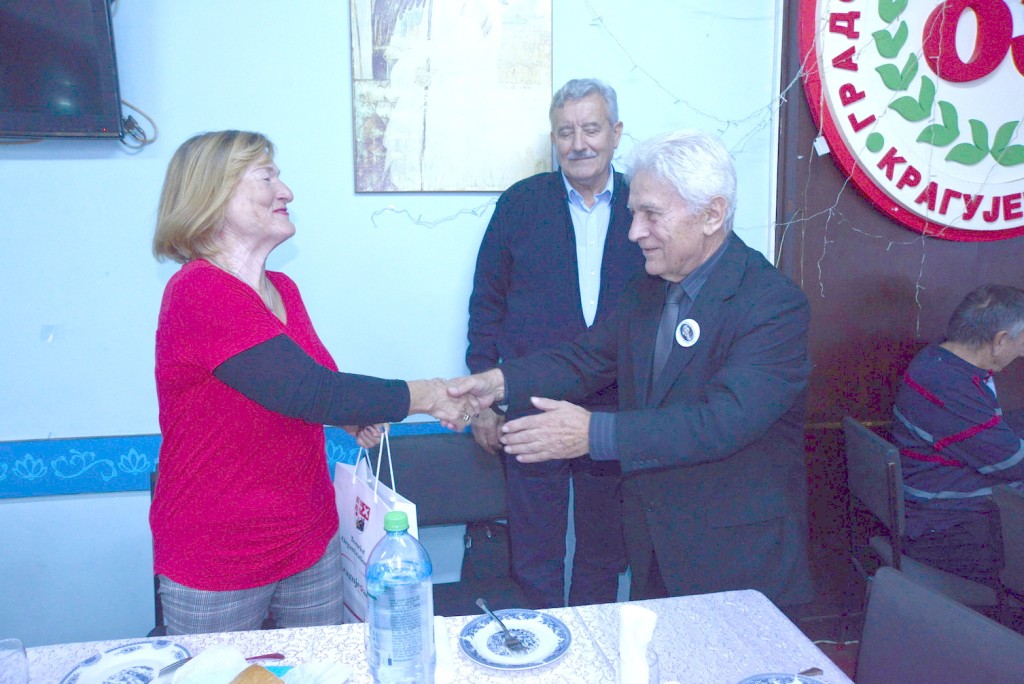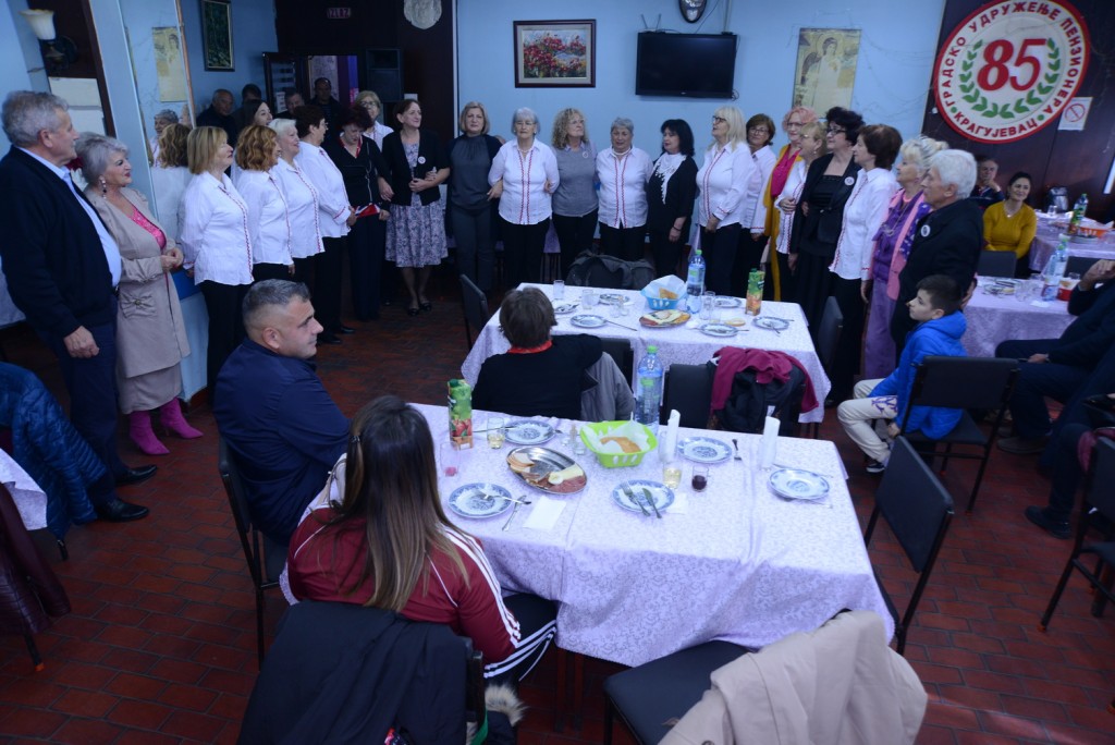 „SKD Prosvjeta“ iz Splita Udruženja Srba iz Hrvatske ugošćeno je u petak 10. novembra od SKD Udruženja Srba iz Hrvatske „Nikola Tesla“ Kragujevac. U okviru programa druženje je započeto u Udruženju penzionera Kragujevca osveženjem i poklonima zaslužnim članovima iz Dalmacije. Prvo je pesmom goste pozdravili pevačka grupa domaćina, pa je Ženski pjevački zbor za negovanje strih srpskih i dalmatinskih pesam otpozdravio domaćinima. Dame su se ujedinile i nastavile druženje uz pesmu, koje je mnogima izmamilo suze! Gosti su zatim posetili Spomen park i položili venac na humku streljanim đacima i profesorima spomenika „Peto tri“.
