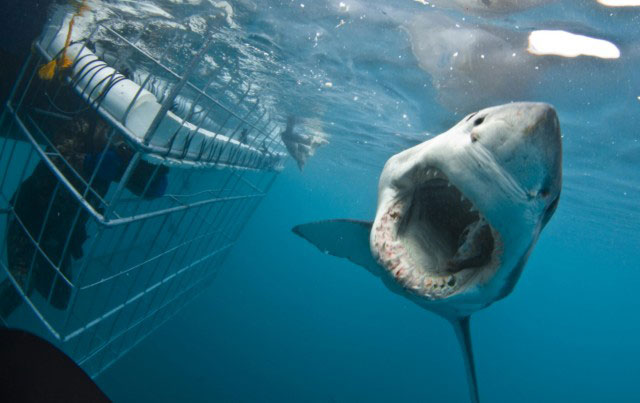 Iako se Gansbaai plaža smatra jednom od najopasnijih na svetu, ona privlači sve veći broj turista koji žele da iz blizine vide i plivaju, u sigurnim kavezima, sa velikim belim ajkulama.
