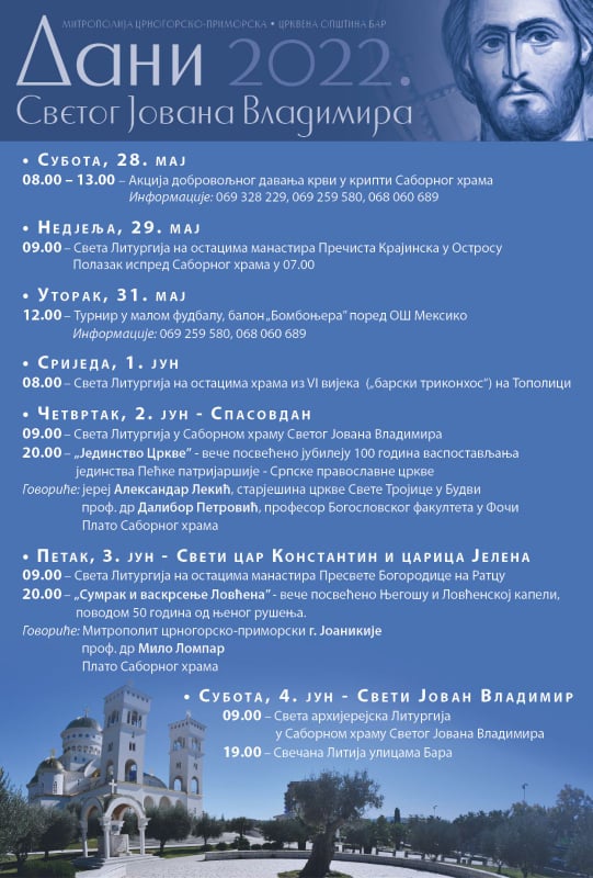 U ove svijetle dane kada proslavljamo Praznik nad praznicima-Pashu Gospodnju-Vaskrsenje Hristovo, pripremamo se da proslavimo i spomen divnog svjedoka Hrista Vaskrsloga, Sv. Jovana Vladimira, našeg nebeskog zastupnika, roditelja i pokrovitelja.