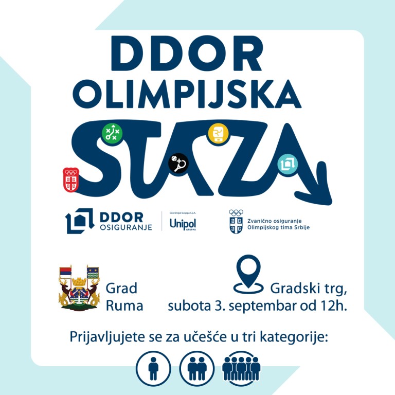 U subotu, 3. septembra, sa početkom u 12.00 časova u Rumi će se održati događaj „DDOR Olimpijska staza“ u organizaciji Olimpijskog komiteta Srbije i kompanije DDOR osiguranje, uz podršku grada Rume.