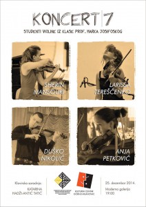 Na sedmom, završnom koncertu iz koncertnog ciklusa za 2014. godinu koji zajednički organizuju FMU i Kulturni centar, Anja Petković, Duško Nikolić, Sherin Mansouri i Larissa Tereščenko