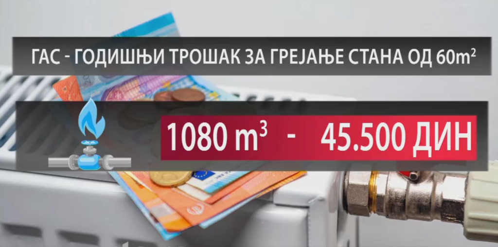 Za grejanje stana od 60 kvadrata na gas u grejnoj sezoni treba izdvojiti 45.500 dinara. Za osam do devet kubika drva Agencija za energetiku ima dve kalkulacije – ko je kupio jeftinije drvo oko 63.000 dinara, dok za skuplje drvo treba više od 104.000. Za dve i po tone peleta, po ceni koju je država ograničila, treba izdvojiti više od 96.000 dinara.